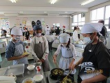 栄養教諭の先生に作り方を教えてもらって、いざ調理開始。同じ大きさに切りそろえるのは難しかったですが、安全に調理を終え、おいしくいただきました。家でも作る気満々です。